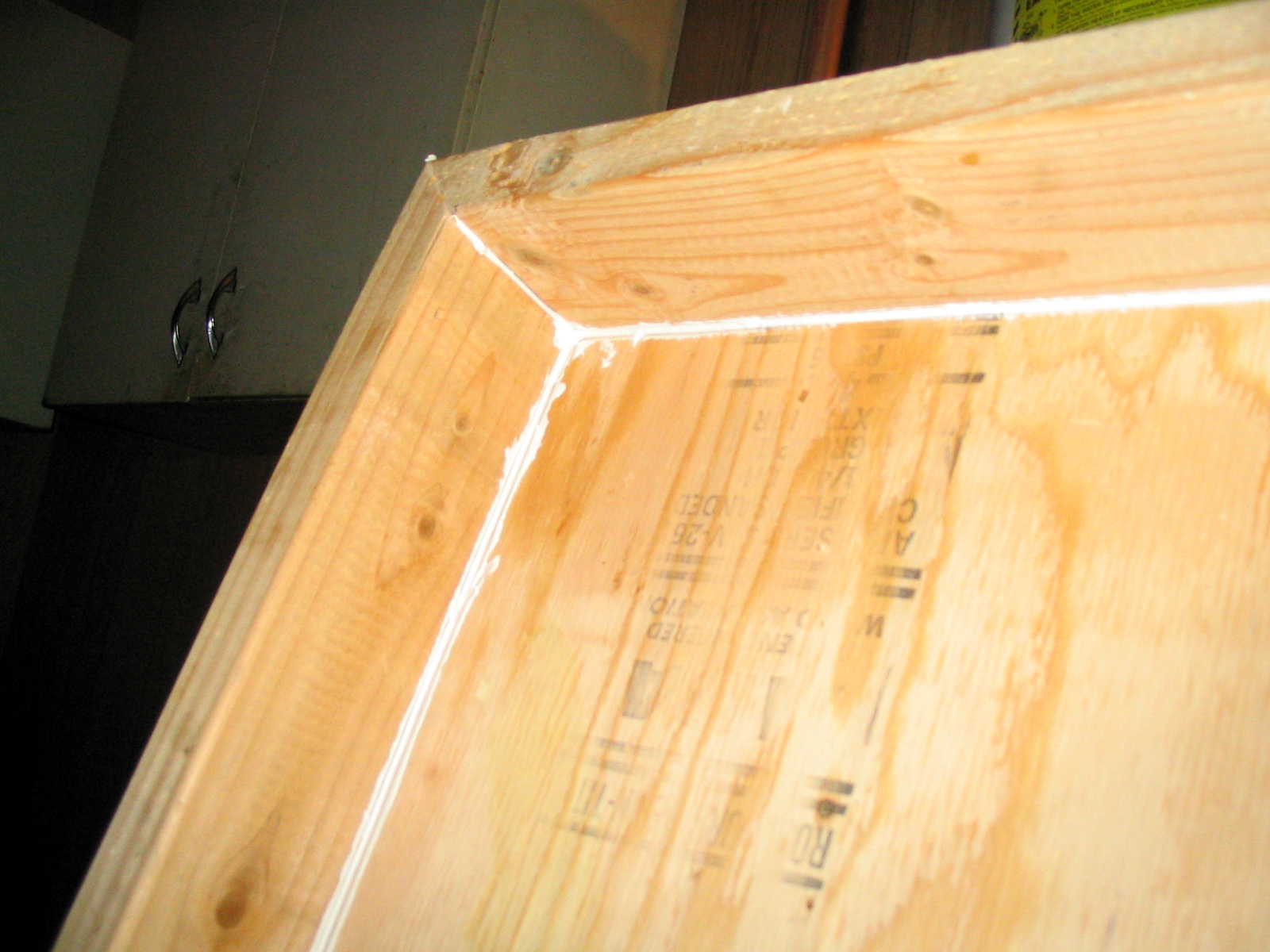 A side view of the three rigid fiberglass sheets, attached to the supports. There is a small air gap behind the fiberglass. This gap is an important part of the trap and helps capture lower frequencies.